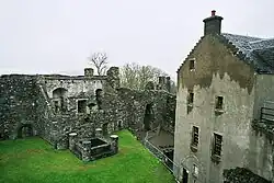 The Campbells continued to add to the castle, building a new house over the old west range in 1725. However, the rest of the castle was already decaying. In 1810, an accidental fire gutted the gatehouse, and the Captains ceased to live here, moving to Dunstaffnage House some 2 km to the south-east.[14] Tenants lived in the 1725 house within the castle until 1888.[18]