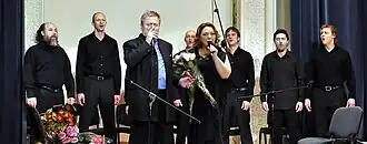 Duo Zikr is a vocal duo[1] which perform a queer style of ritual, shamanic, scat vocalese that embraces traditions and techniques borrowed from Asiatic singing and Muslim and Buddhist chants to create a range of sound and tones almost equal to that of a symphony orchestra.[1] Vocal compositions of the duo consists of loud and quiet sounds accompanied by a piano: church chants meet spirituals, combined with throat singing and avant-garde music.[2]