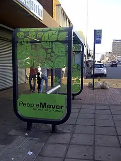 The Durban People Mover is a South African tourist-oriented bus service[1] which runs every 15 minutes and consists of three routes within the central business district and along the beachfront, connecting various attractions. This new bus system forms part of a transport redesign process that the city implemented in preparation for the 2010 FIFA World Cup.