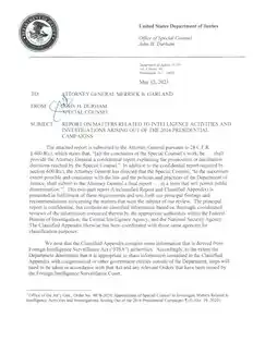 - ^ Durham, John (May 12, 2023). "Report on Matters Related to Intelligence Activities and Investigations Arising Out of the 2016 Presidential Campaigns" (PDF). Justice Department. Retrieved May 15, 2023.