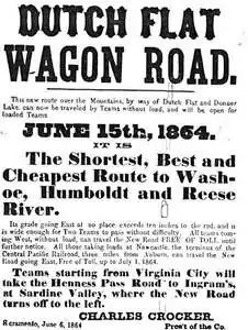 Advertisement for Dutch Flat Wagon Road, 1864.