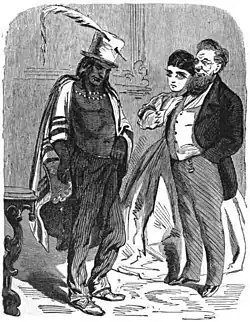 "Muck-a-Muck, the haughty, untaught, untrammeled son of the forest (after Cooper)." Illustration for Bret Harte's Condensed Novels (first edition).
