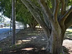 Additional improvements to the school grounds were made in the 1950s, when trees were planted for shade purposes. From 1953, most of the trees (Ficus spp.) along the Annerley Road boundary and those at the foot of the playing field steps were planted by the children on school Arbor Days. These plantings were made during/after 1953.[67] A land exchange with the Boggo Road Gaol in 1971 swopped a portion of land on the southeast of the site, adjacent to the railway reserve, for a portion to the south of the school.[68][1]