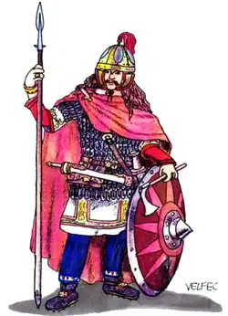 In the final phase of Roman rule over Gaul, Childeric, as civilian administrator and commander of the warrior groups around the town of Tournai in the north of the province, acted as the commander of the Salian Franks. Tournai served as his residence and administrative headquarters. His power was based upon, among other things, the weapon forges here. In Childeric's grave, discovered in 1653, Eastern Roman gold coins, a gold-plated officer's coat (paludamentum), and a golden onion button brooch were found. The first was interpreted as renumeratio (payment) for services rendered, the last as an insignia of the late Roman army.