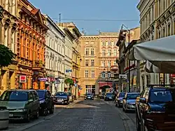 Between 1890 and 1914, many houses along the street have been transformed into 3 to 4 storey buildings, displaying ornated facades (e.g. building at Nr. 55, decorated with a head of Hermes), turning the venue into one of the most representative in the city.[7] In the final section of the street near the Main Railway Station, there used to stand five hotels, furnished as tenements.[4]
