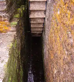 The water wheel, shown in the photographs, provided power for a sawmill.[3]