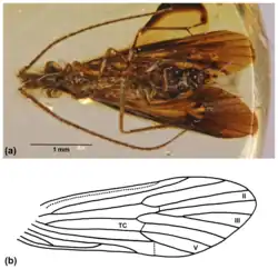 - ^ a b c Wichard, Wilfried; Neumann, Christian; Müller, Patrick; Wang, Bo (2018). "Family Dysoneuridae (Insecta, Trichoptera) in Cretaceous Burmese amber". Cretaceous Research. 82: 138–146. Bibcode:2018CrRes..82..138W. doi:10.1016/j.cretres.2017.10.008.