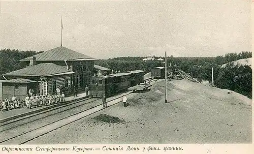 Dyuny railway station (Russian: Ста́нция Дю́ны) is a former railway station located near Sestroretsk (a suburb of Saint Petersburg), Russia, and functioned in the first two decades of the 20th century.[1]