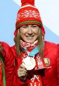 Dzinara Smolskaya (née Dzinara Talhatauna Alimbekava, Kazakh: Динара Талғатқызы Әлімбекова, romanized: Dinara Talğatkyzy Älimbekova, born 5 January 1996) is a Kazakhstan-born Belarusian biathlete. She won a gold medal in the 4×6 km relay at the 2018 Olympics.[1] Alimbekava won her first IBU World Cup competition (a sprint) in Hochfilzen, Austria, in December 2020, and finished as the Under-25 Cup leader for the 2020-21 World Cup season.[2]