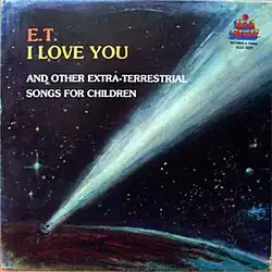 Released under Kid Stuff, a record label devoted entirely to producing music catered for children, "E.T., I Love You" appeared on E.T., I Love You and Other Extra-Terrestrial Songs for Children. It also features six other alien related songs and an overture at the beginning, where a childlike voice with high levels of reverb asks questions like "Where did you come from? Another world?".[7] Overall, the album has been called "freaky";.[7] "So Near and Yet So Far" has been described as up-tempo, comparable to Debbie Gibson, and features the sound effects of robots and a toilet flushing, and "Please Phone Ring-a-Ling" is in the realm of doo-wop style of music.[7] Although being recorded under the group title of "Children's Starlight Chorus", it is not actually sung by any children, but rather an alto female singer attempting to mimic the voice of a young boy.[8] None of the music or any sound clips from the movie appear on the album.[7]