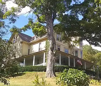 E. E. Hutton House, also known as The Place Called Hutton, is a historic home located at Huttonsville, Randolph County, in the U.S. state of West Virginia. It was built in 1898, and is a 2½-story, cross-shaped residence in the Queen Anne style. It has a hipped and gable roof broken by dormers and a three-story octagonal tower. It features a deep, one-story wraparound porch. It was built by Eugene Elihu Hutton, Sr., a great-grandson of Jonathan Hutton, namesake of Huttonsville.[2]