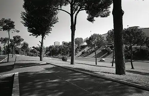 On 26 April 1937 Benito Mussolini planted a cluster pine at the centre of the site of the future EUR district. Ultimately he wanted to push the Roman urban area towards the sea.[4]
