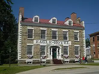 The Eagle Hotel, also called the Stone Hotel, is a former hotel built in 1826 in Waterford, Erie County in the U.S. state of Pennsylvania. It was documented by the Historic American Buildings Survey in 1933 and was listed on the National Register of Historic Places on November 28, 1977. The first floor of the Eagle Hotel is used by the Sugar 'n Spice restaurant, with the second and third floors used as a museum by the Fort Le Boeuf Historical Society.[2]