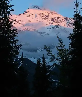 ![]() The Northern face of Eagle Peak remains covered in snow throughout early summer | |