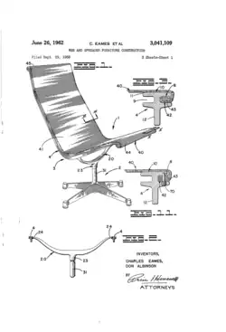 - ^ US3041109A, Charles, Eames & Don, Albinson, "Web and spreader furniture construction", issued 1962-06-26