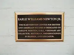 Newton was the recipient of many awards and honors throughout his life, including Knight Commander of the Order of Isabella la Catolica from Spain in 1965 and Officer of the British Empire from England in 2003. He was an avid collector of British and American art and the Newton Center for British Art at the Savannah College of Arts and Design was opened in 2002 (renamed the SCAD Museum of Art). The Earle W. Newton Collection of British and American Art resides in the Jen Library at SCAD. The collection includes over 200 portraits by artists including Anthony Van Dyck, Sir Joshua Reynolds, Thomas Gainsborough, Gilbert Stuart, and William Hogarth, over 1,400 prints, as well as early maps.[16]