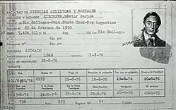 Kirchner took part in his first political activities during high school, becoming president of the students' union. He organized a strike in support of a fired teacher during a visit of Juan Carlos Onganía to the city.[4] During this time he developed strabismus, but refused to be treated. He considered his affected eye part of his identity.[4] He could not become a teacher because of his poor diction.[4] He joined a basketball team for some time, but was not successful at that either.[4]