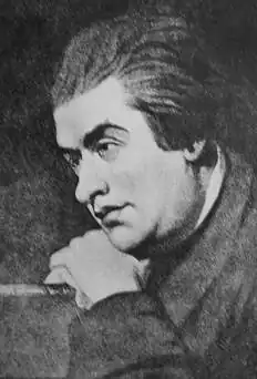 Ford was also a notorious alcoholic whose excesses contributed to his death six years after Johnson's visit.[32] This event deeply affected Johnson, and he remembered Ford in his Life of Fenton, saying that Ford's abilities, "instead of furnishing convivial merriments to the voluptuous and dissolute, might have enabled him to excel among the virtuous and the wise".[33] Having spent six months with his cousins, Johnson returned to Lichfield, but Hunter, "angered by the impertinence of this long absence", refused to allow him to continue at the grammar school.[34]