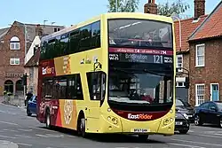 EastRider is the brand name given to a network of long-distance bus services across the East Riding of Yorkshire and North Yorkshire, operated by Go-Ahead Group company East Yorkshire. The EastRider services, all operating from Kingston upon Hull, serve the destinations of Bridlington, Goole, Hornsea, Withernsea and York using a fleet of specially-branded high-specification buses.