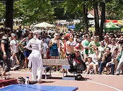 • East Atlanta Strut - East Atlanta's free annual one day neighborhood festival, always on the third Saturday in September featuring a parade, food, live music, art, and events. The festival is held to highlight the businesses in East Atlanta Village as well as raise funds for schools, senior programs and Neighbor In Need East Atlanta. The Festival is run completely with Volunteers. [2]