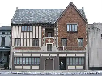 The East Broad Street Commercial Building exemplifies Jacobethan Revival structure. It is primarily constructed of brick on a concrete foundation. The gabled wood is made of slate.[3]