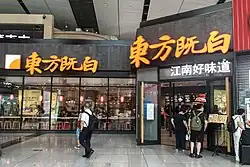East Dawning (Chinese: 东方既白, Dongfang Jibai) was Yum China's fusion of the KFC business model with Chinese cuisine.[1] Chinese food was served exclusively, but the chain focused on the elements of Chinese cuisine that were more quickly and easily prepared. This excluded some dishes, such as boiled dumplings (jiaozi), but included steamed pastries such as steamed buns, including the popular xiaolongbao. Soft drinks were eschewed in favor of traditional and modern Chinese drinks such as teas (including milk tea), juices, and soy milk.[2] However, unlike most Chinese fast food, East Dawning used consistent recipes and preparation methods between restaurants.[1] The restaurants were designed to resemble Chinese homes; for instance, the dining tables were similar to offering tables found in many homes.[1]