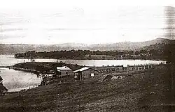 Located on the eastern border of East Gosford is Erina Creek. Originally the creek provided access to the many ketches and steamers which came in and out on timber business. A man operating a punt carried people and their goods across Erina Creek. In 1884 the Government called tenders for the construction of an iron drawbridge with timber approaches. On 15 September, the tender of John Johnstone was accepted and work began. The bridge was completed in 1886, probably early in the year, at a cost of £3,695/15/-, which was considerably more than the average cost of £500 for country bridges. Part of the bridge rolled back towards the Gosford side by means of wheels guided on rails. This was achieved by men cranking the mechanism by hand. The bridge was opened seven times a day. The last of the steamers to go through was the Lone Pine in 1928.[9] The old Punt Bridge, as it was called, was replaced by a modern bridge built by Beattie and Frost Pty Ltd of Gosford in 1962.[10] It is still known as The Punt Bridge and forms part of the Central Coast Highway.