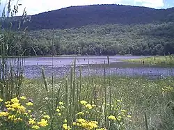 The East Kill's 36.25-square-mile (93.9 km2) watershed, is mostly located within the town of Jewett, with a few small sections entering into the towns of Windham, Ashland, and Lexington.[2] East Kill drains some of the highest slopes in the Catskills, including the Blackhead Mountains. The Blackhead Mountain range includes Thomas Cole Mountain, Black Dome, and Blackhead Mountain, the fourth-, third-, and fifth-highest peaks in the Catskills, respectively. The highest point in the East Kill watershed is 3,948 feet (1,203 m) at the summit of Black Dome Mountain in southeast Jewett. The average elevation of the watershed is approximately 2,674 feet (815 m).[2]