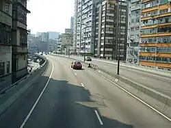 East Kowloon Corridor (Chinese: 東九龍走廊; aka East Kowloon Way[1]) is a motorway in Kowloon, Hong Kong. Part of Route 5, it is a dual two-lane carriageway viaduct running from the western exit of Kai Tak Tunnel near Sung Wong Toi Road to its ramp on Chatham Road North between Lo Lung Hang Hill and the western side of Hung Hom, to the northnortheast of Fat Kwong Street Flyover.