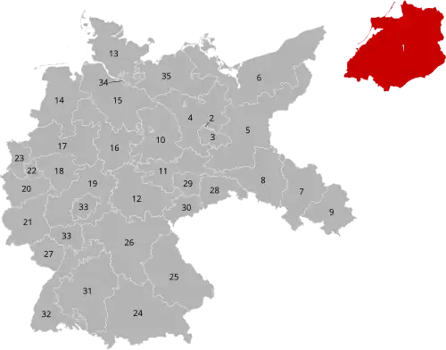 Its boundaries corresponded to the contemporary province of East Prussia within the Free State of Prussia. It was constituency 1 in the numbering scheme.[1]