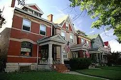 In the mid-19th century, Newport became a hub for trade, industry and culture. The Victorian era was Newport's most affluent period, as is evident by the East Row's elegant houses, which look much as they did more than 100 years ago. The establishment of the East Row was made possible when, motivated by Newport's rapid growth, the grandson of Gen. James Taylor decided to subdivide the family's estate as Taylor's Row Addition. The area became a favorite of wealthy business owners and merchants in the late 19th century.[2] East Row Historic District is home to 1,070 homes and is Kentucky's second largest historic district. All buildings in East Row have the distinction of being listed on the National Register of Historic Places. Early houses, near the western edge of the district, were built in the Italianate style, later homes were built in Queen Anne, the Colonial Revival and American Foursquare style.