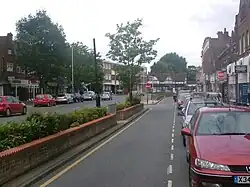 The Metropolitan Railway was extended to Uxbridge from Harrow on the Hill in 1904, passing through Eastcote. A halt was built in 1906.[9] The extension of the railway brought with it a substantial number of travellers seeking a day out in the countryside. The tea garden of the Old Barn House became popular with visitors to the area, as were cottages including The Rosery and Orchard Farm which served refreshments. In 1914, the Cavendish Pavilion was built as a private sports ground.[10] The railway halt was rebuilt as a station in 1939.[9]