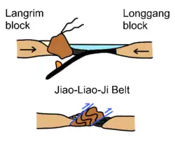 The Eastern Block consists of two sub-blocks, which are linked by the Jiao-Liao-Ji Belt.[1] On the northwest of the Belt, there is the Longgang (Yanliao) Block, while on the southeast, there is the Langrim Block.[1]