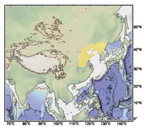The Eastern Block of the North China Craton is one of the Earth's oldest pieces of continent. It is separated from the Western Block by the Trans-North China Orogen.[1] It is situated in northeastern China and North Korea.[1][2] The Block contains rock exposures older than 2.5 billion years (pre-Neoarchean and the Neoarchean Era).[1] It serves as an ideal place to study how the crust was formed in the past and the related tectonic settings.[1]