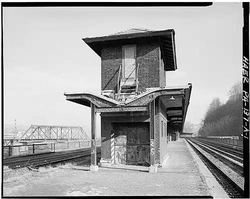 According to The Lafayette, the student newspaper of Lafayette College, the station stopped receiving passenger trains in 1961, closing to freight traffic in the 1970's due to a decline in demand for coal. On July 24, 1985, its platforms and canopy were removed, and it currently sits abandoned next to the Lehigh River.[8]