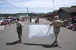 Independence Day parade in 2014. Mount Rainier can be seen in background.