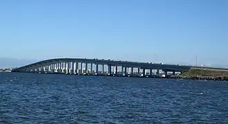 The Eau Gallie Causeway connects Eau Gallie, Florida (which merged with Melbourne in 1969), with SR A1A near Indian Harbour Beach, across the Indian River Lagoon. Located entirely within the Melbourne city limits, the causeway consists of a main bridge crossing over the Intracoastal Waterway and a relief bridge. The bridge is a key link in SR 518, Eau Gallie Boulevard, of which the causeway is a part.