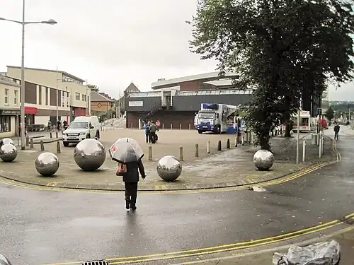 The station site has been redeveloped as a shopping complex,[19] having previously been a multi-storey car park.[20] The angle of the building to the road follows the former railway alignment.[7] The Ebbw Vale leisure centre has been constructed on the trackbed about 0.5 miles (0.80 km) north of the former terminus.[20]