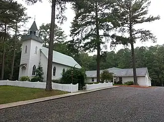 Ebenezer Methodist Church is a historic church located near Bells, Chatham County, North Carolina. It is located on the west side of SR 1008, about 0.5 miles (0.80 km) north of its junction with SR 1975. It is a modest single-story wood-frame structure, with a steeply pitched metal gable roof and weatherboard siding. It has Gothic Revival features, including a tower with Gothic-arched entrance openings. The sanctuary's windows, doors, and interior woodworking are original to the structure. It was built about 1890, for a Methodist congregation established in 1827.[2]