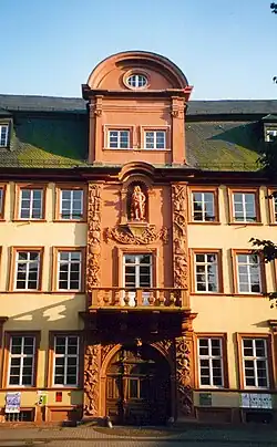 In 1707, Eberhard Friederich had the Haus zum Riesen ("House of the Giant") built in Heidelberg. The architect was Johann Adam Breunig, who was also responsible for the Jesuit college and the Old University. With the express permission of the Elector, the house was partially built using stone from the "fat tower" of Heidelberg castle. The house owes its name to the over-life-size statue of von Venningen, which was made by Heinrich Charrasky and is located on the second story of the façade.