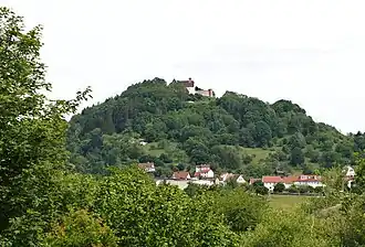 Construction of the castle began at the beginning of the 12th century; it was first mentioned in 1226. In 1714 a fire destroyed almost the entire Castle. The castle was rebuilt by the Cistercian monastery in Schöntal around 1720 after this devastating fire. In 2020 the castle was the location for the Identitarian movement.[1] Tourism highlight is the highest "Mammutbaum" (Sequoioideae) of Germany.[2]
