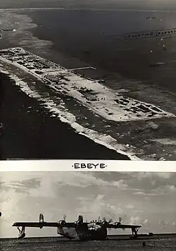 The Imperial Japanese Navy constructed a seaplane base on Ebeye in the early 1940s. Following the Battle of Kwajalein from 31 January to 3 February 1944, Ebeye was occupied by US forces. On 7 March the 107th Naval Construction Battalion was sent to Ebeye to redevelop the seaplane base. The Seabees repaired the existing 1,600-by-30-foot (487.7 by 9.1 m) pier, adding a 50-by-240-foot (15 by 73 m) ell extension, and also repaired a 250-foot (76 m) Japanese H-shaped pier. The Seabees assembled a pontoon wharf and pontoon barges for transporting damaged carrier aircraft to repair units ashore. Further installations on Ebeye consisted of housing in floored tents and Quonset huts, a 150-bed dispensary, four magazines, 24,000 square feet (2,200 m2) of covered storage, and a 4,000-US-barrel (480,000 L; 130,000 US gal; 100,000 imp gal) aviation-gasoline tank farm.[8]