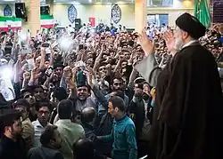 In February 2017, Ebrahim Raisi was said to be backed by the Front of Islamic Revolution Stability and emerging as the conservative camp consensus candidate.[10] One of the senior member of the front told press that his party tried to "persuade Ebrahim Raisi to stand for the elections, but did not succeed".[11] On 23 February 2017, Raisi won the majority of votes during the meeting held by Popular Front of Islamic Revolution Forces, a newly established umbrella organization of conservatives.[12]