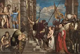 The Ecce Homo (lit. 'Behold the Man') is a large oil on canvas painting by Titian, signed and dated 1543. It hangs in the Kunsthistorisches Museum, in Vienna.[1] It is not to be confused with several smaller compositions by the same artist, including Christ Carrying the Cross, attributed to either Titian or Giorgione.