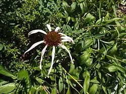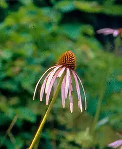 Echinacea laevigata, the smooth purple coneflower, is a federally listed threatened species[3] of plant found in the Piedmont of the eastern United States. Most populations are found on roadsides and other open areas with plenty of sunlight, often on calcium- and magnesium- rich soils.