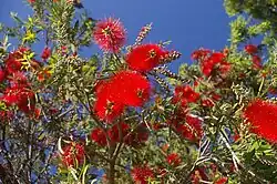Savannas (or grassy woodlands), the most predominant biome in the Sydney region,[9] mainly occur in the Cumberland Plain west of Sydney CBD, which generally feature eucalyptus trees that are usually in open, dry sclerophyll woodland areas with shrubs (typically wattles, callistemons, grevilleas and banksias) and sparse grass in the understory, reminiscent of Mediterranean forests.[10] The plants in this community tend to have rough and spiky leaves, as they are grown in areas with low soil fertility. Wet sclerophyll forests, which are part of Eastern Australian temperate forests, have narrow, relatively tall, dense trees with a lush, moist understory of fleecy shrubs and tree ferns. They are mainly found in the wetter areas, such as Forest District and the North Shore.[11]