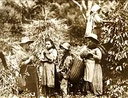 Coca, the Andean plant now processed into cocaine, was cultivated and the leaves were consumed by indigenous particularly in mining areas. Production and distribution of coca became big business, with non-indigenous owners of production sites, speculators, and merchants, but consumers consisted of indigenous male miners and local indigenous women sellers. The Catholic church benefited from coca production, since it was by far the most valuable agricultural product and contributor to the tithe, a ten percent tax on agriculture benefiting the church.[42]