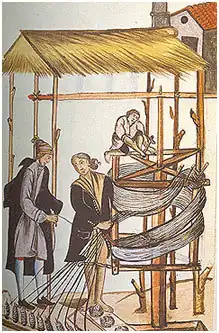 Silver was further refined by the complex amalgamation process, which was continually developed in America based on rudimentary German techniques. The amalgamation technique of patio (developed in the early 17th century) was claimed to be one of the most efficient ways to refine silver ore, according to German experts in silver mining. The technique mixed ground ore with catalysts (salt or copper pyrite) to create a paste which would be dried and leave silver amalgam remaining.[27] It required little water and could be set up anywhere, which would have been hugely beneficial to silver miners of New Spain. Historian Peter Bakewell claims, “No other single innovation in refining was as effective as magistral (copper sulphate derived from pyrites).” This material became widely used throughout Spanish America to refine silver during the amalgamation process. German miners provided “smelting technology,” another refinement technique. These furnaces were cheap, and “it was the preferred technique of the poor individual miner or of the Indian labourer who received ore as part of his wage.”[26] However, certain historians argue that the process of smelting was extremely destructive to the natural land surrounding the mines. It originally promoted deforestation in order to fuel the smelting process, and the introduction of mercury to the process led to poisoned soil and water sources, and many Indian labourers suffered from mercury poisoning as a result.[28]