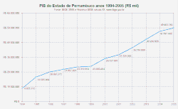The economy of the Brazilian state of Pernambuco is based on agriculture, animal husbandry and industries. The economy of the state, after stagnating from 1985 and 1995, has been growing rapidly since the end of the twentieth century. In 2000, the GDP per capita was R$3.673 ($2098), resulting in more than 40% growth in this period, and more than 10% in a year. In 2007, the GDP per capita grew up to R$7.337 ($4.217).