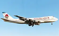 America West Airlines pioneered many low-cost features, including focusing on reducing costs by having flight attendants double up as customer service representatives. The company also brought in the first of the industry's yield management systems that aimed to maximize revenues by creating fare segments. During this time, the company had the lowest cost-per-seat-mile in the industry and had one of the best on-time records.[1][4] The company also enjoyed healthy relations with its employees and had become the largest carrier in Phoenix, surpassing Southwest Airlines in its very first year. It grew its fleet to include jets flying outside of the American mainland to Hawaii and Japan.[1] However, mounting costs and increasing fuel prices, including those stemming from the First Gulf War resulted in the company heading to bankruptcy court in 1992.[1] It was at this time that Beauvais stepped down from the company along with his son. The company, however, went on to shape the airline industry consolidation in the US. It first merged with US Airways taking the US Airways brand name, and then merged with American Airlines to become what is, as of 2021, the world's largest carrier.[1][5]